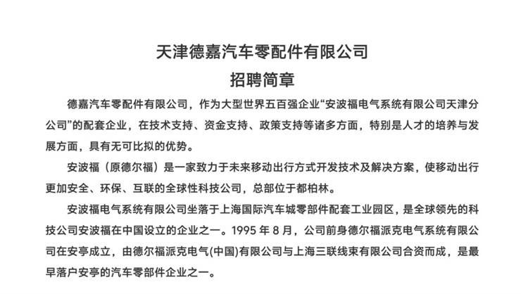宣讲主题:(转发外校线上宣讲)天津德嘉汽车零配件有限公司